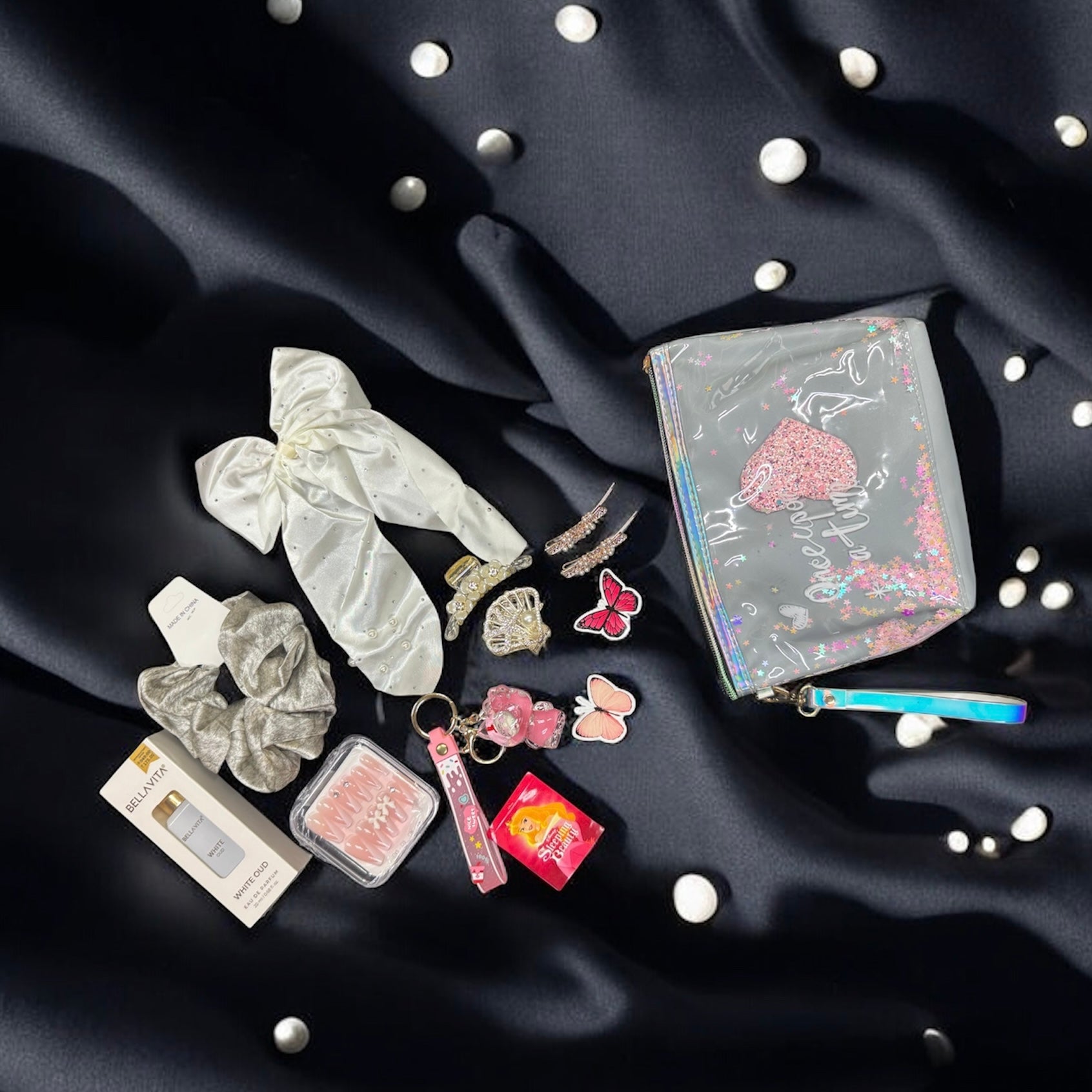 - Elegant hair accessories (scrunchies & bow)